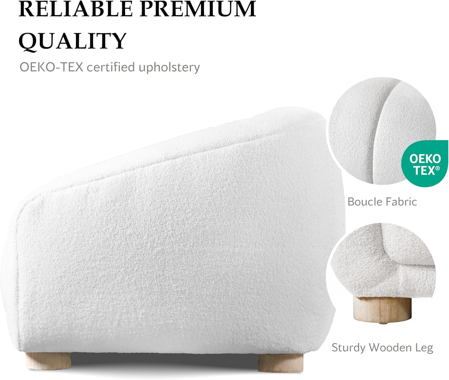 Experience unparalleled comfort and modern elegance with this boucle chair. With its OEKO-TEX certified fabric and contemporary design, this chair combines style with environmental responsibility. It ensures a safe, eco-friendly lounging experience, adding a chic, sophisticated touch to any living space, perfect for both relaxation and style.