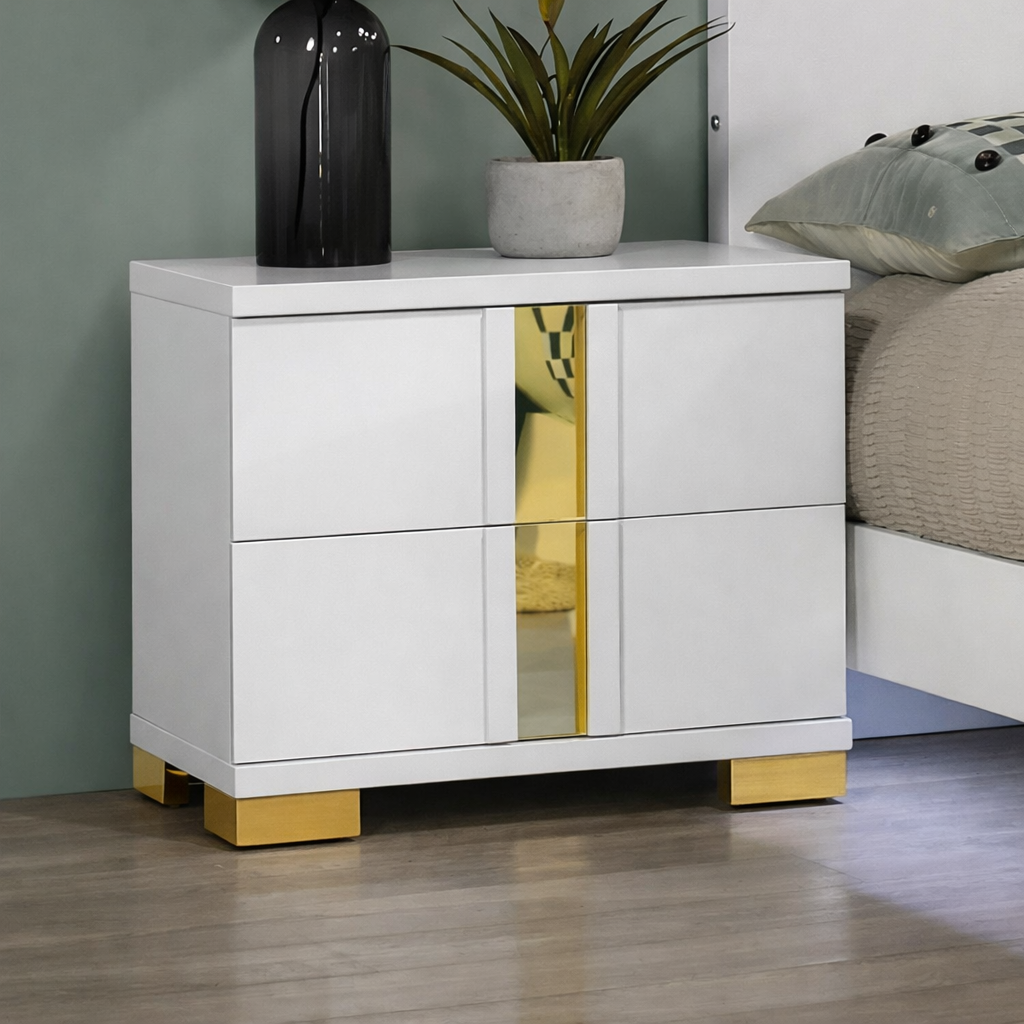 Lillestrom Contemporary Nightstand with Gold Accents – White
