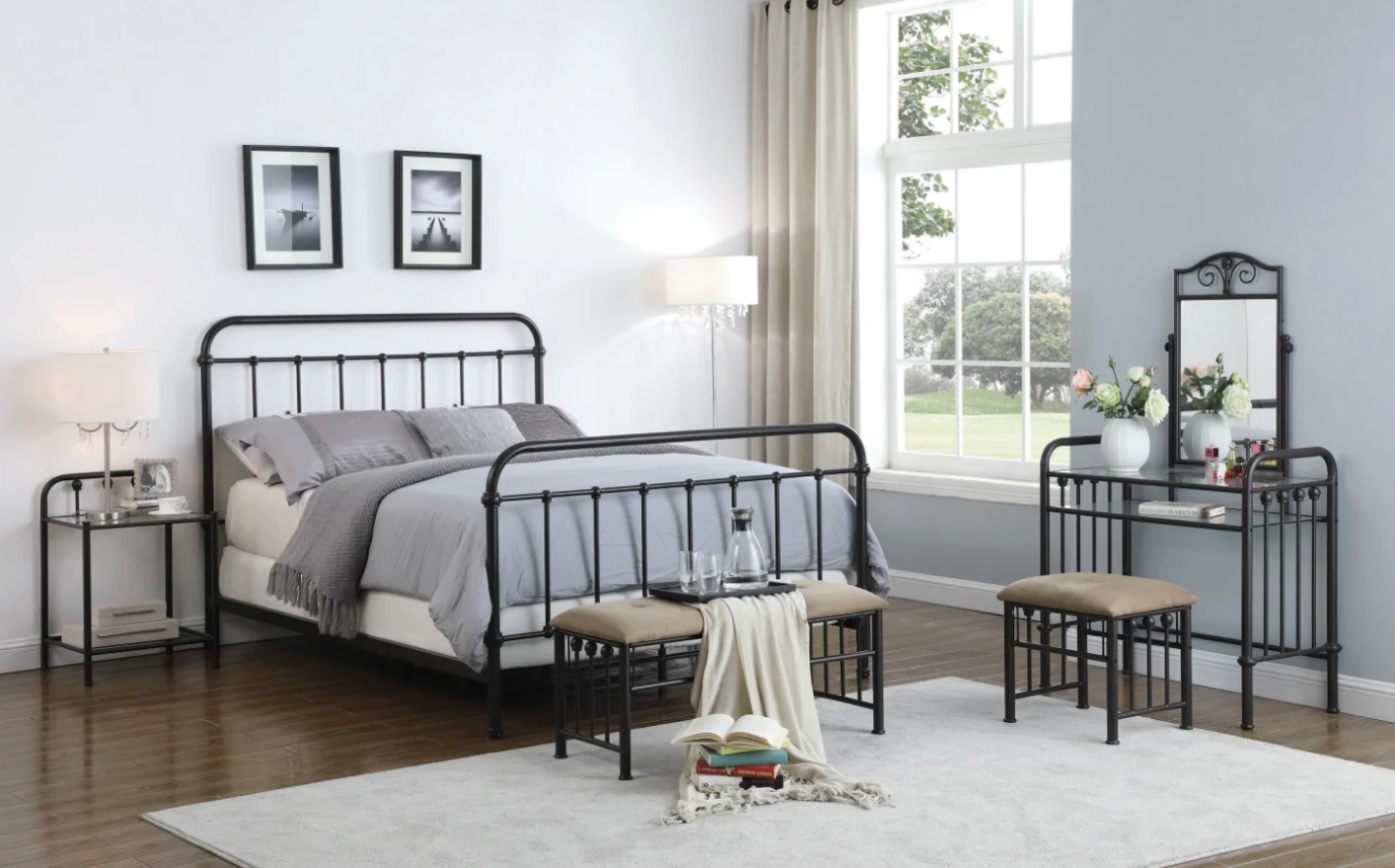This Livingston metal bed is timeless and elegant. Sized for an eastern king mattress, the bed features a headboard and footboard designed to be fashionably fresh. The iron frame is sturdy and durable. The bed is finished in a simple warm bronze that imparts a cosmopolitan air. This stunning bed will rightfully be your bedroom's unconditional centerpiece.
