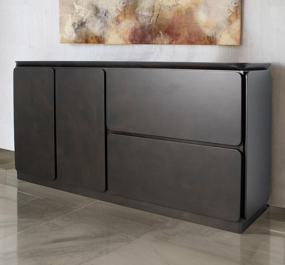 Madeira Collection 2-Door Solid Wood Dining Sideboard, Black
