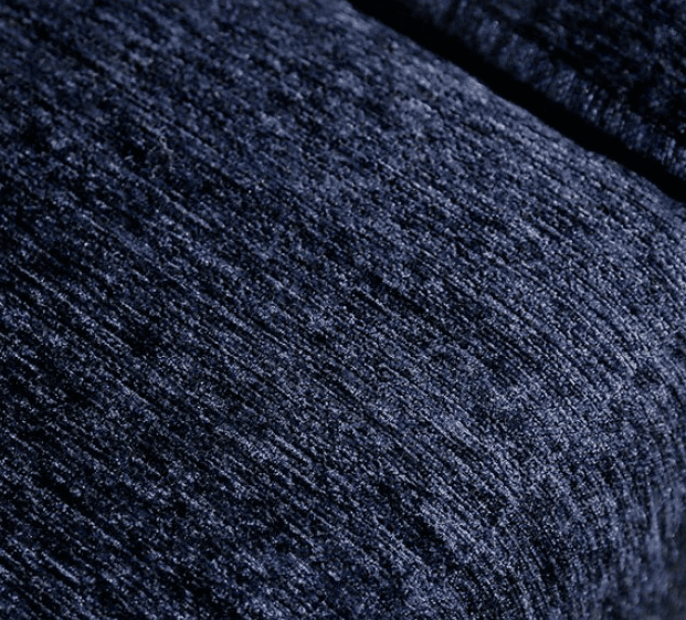 - Blue chenille upholstery with a soft, luxurious hand-feel