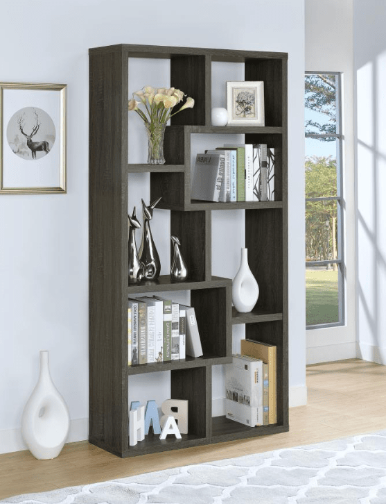 Theo Geometric Design 10-Shelf Bookcase in Weathered Grey