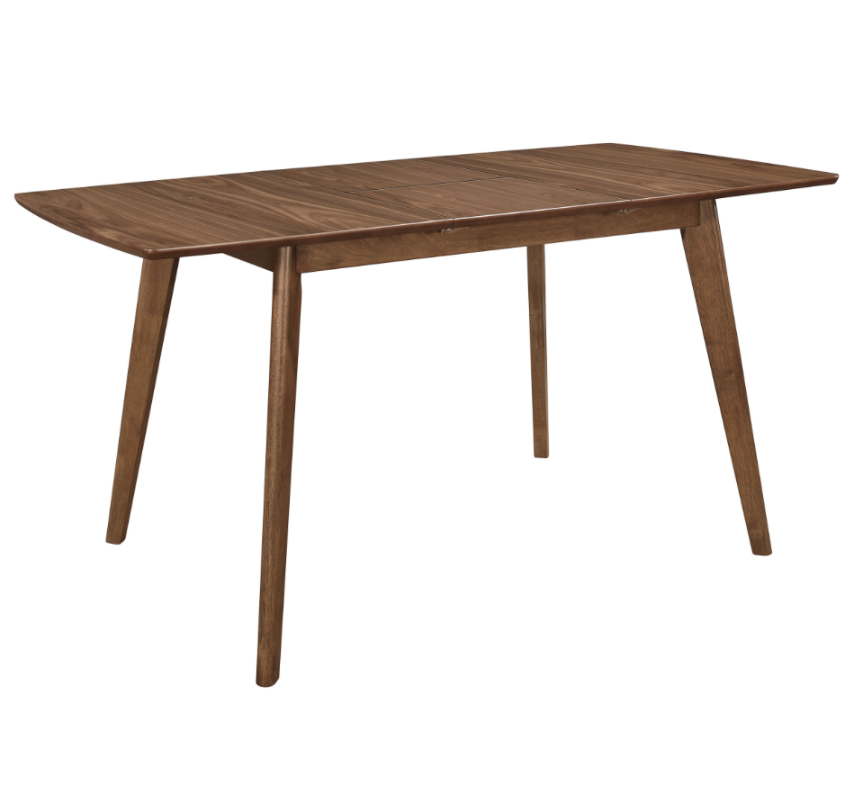 Recapture the minimalist feel of a retro-inspired design in interior decor. Ideal for everyday use, this wood table echoes a style form made popular in the mid-century era. Warm natural walnut offers a versatile and beautiful finish. Enjoy the slender tabletop, tapered, slanted legs, and an overall casual look with extra appeal. Choose themed mid-century chairs or change up a design scheme with something different.