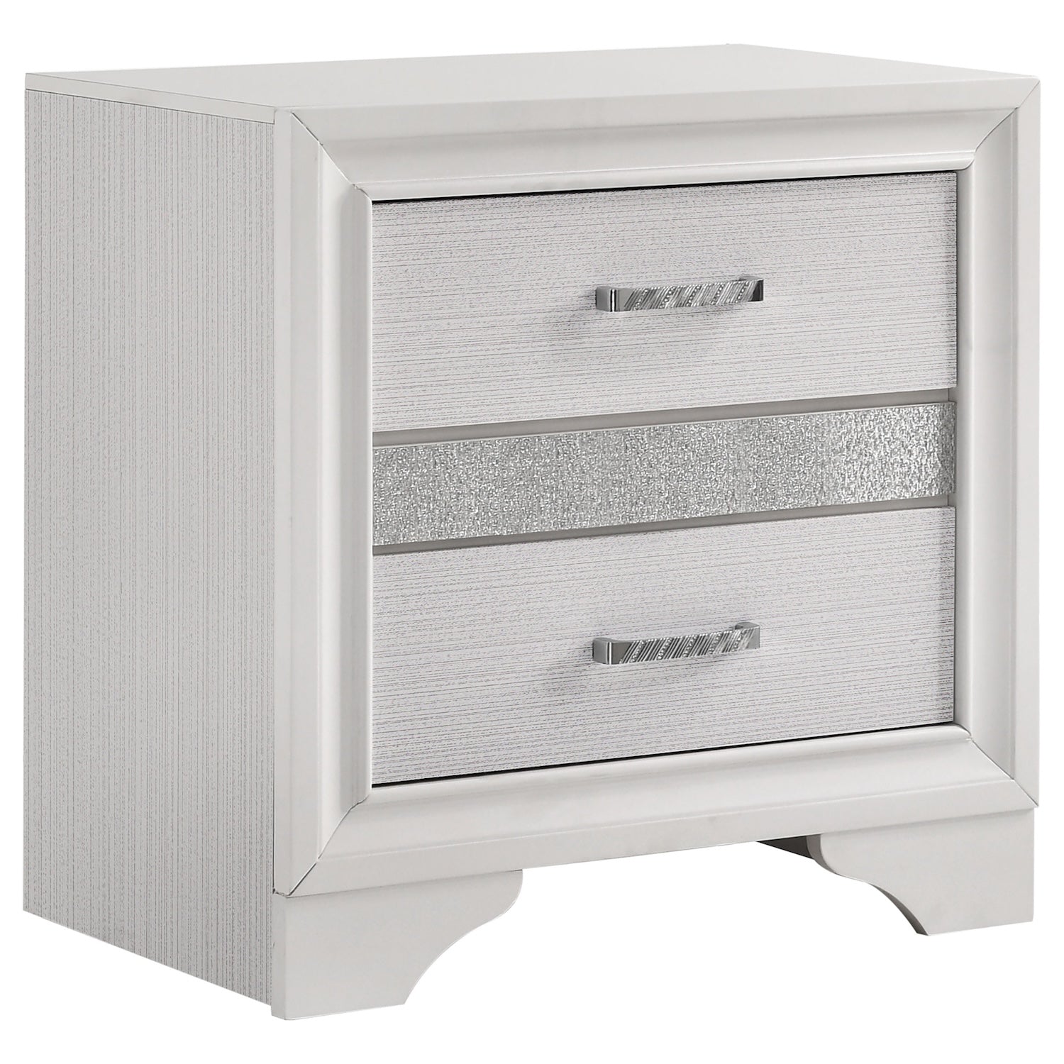 Brighten up your bedroom with this modern glam White Storage Bedroom Set, designed to combine elegance with everyday functionality. The centerpiece bed features an upholstered headboard framed in smooth molded trim, accented with glittering details that catch the light. Integrated storage drawers in the footboard add smart convenience without sacrificing style. Each case piece includes hidden felt-lined jewelry drawers for discreet storage, while crystal drawer pulls and glitter accents complete the glamorous look. Crafted with durable engineered wood and a white laminate veneer finish, this set balances sophistication with lasting quality.
