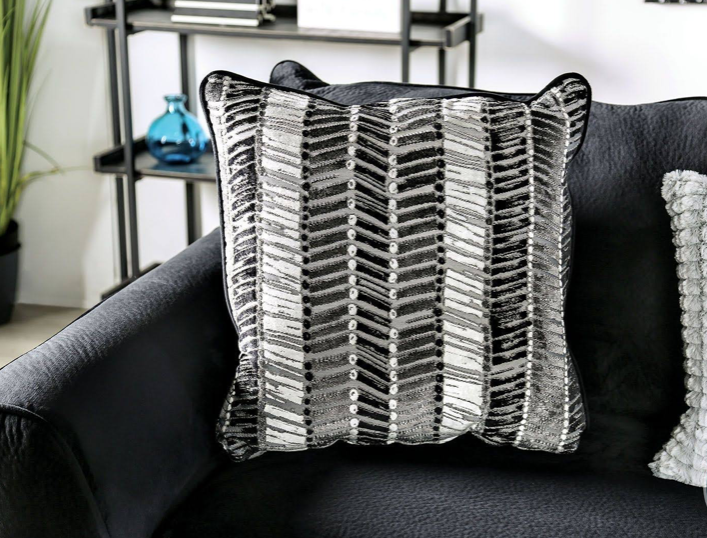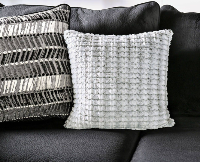 The abstract style can make any room special with such visual delights as rounded inner-edge arms, a discreet chaise, a U-shaped accent chair with arched armrests and a contrasting design ottoman that corresponds to loose pillows for a unifying theme. Microfiber faux crush velvet fabric and plush padding offer the 'sink right in' experience.