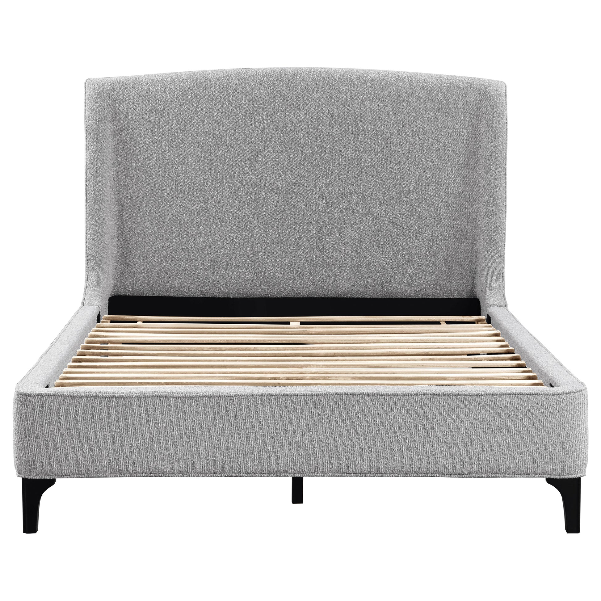 Mosby Queen Platform Bed with Curved Headboard in Light Gray Boucle Fabric