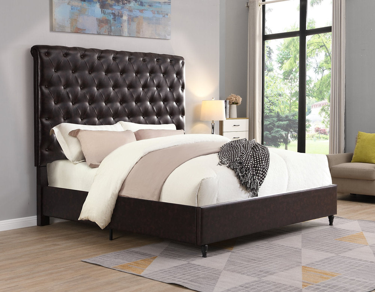 Mottley 72” Faux Leather Tufted Queen Platform Bed – Brown