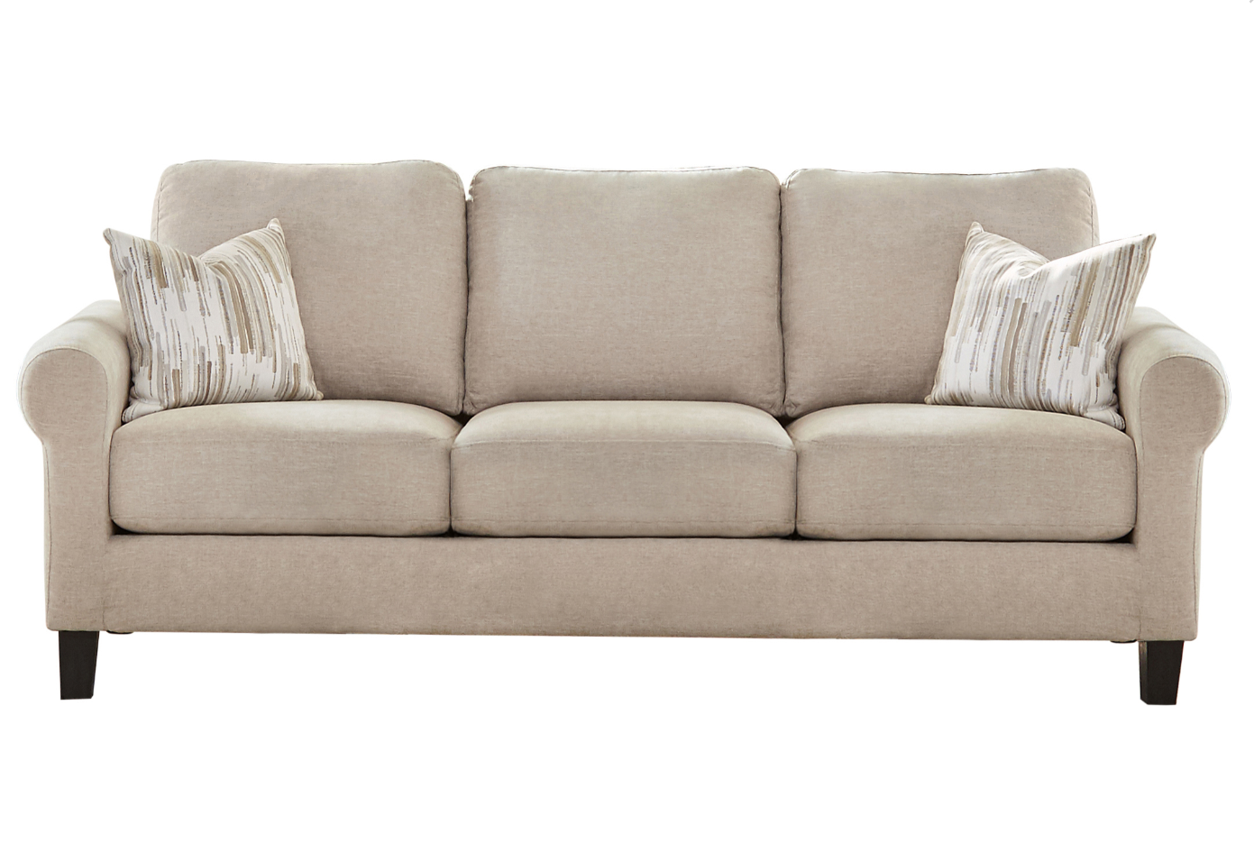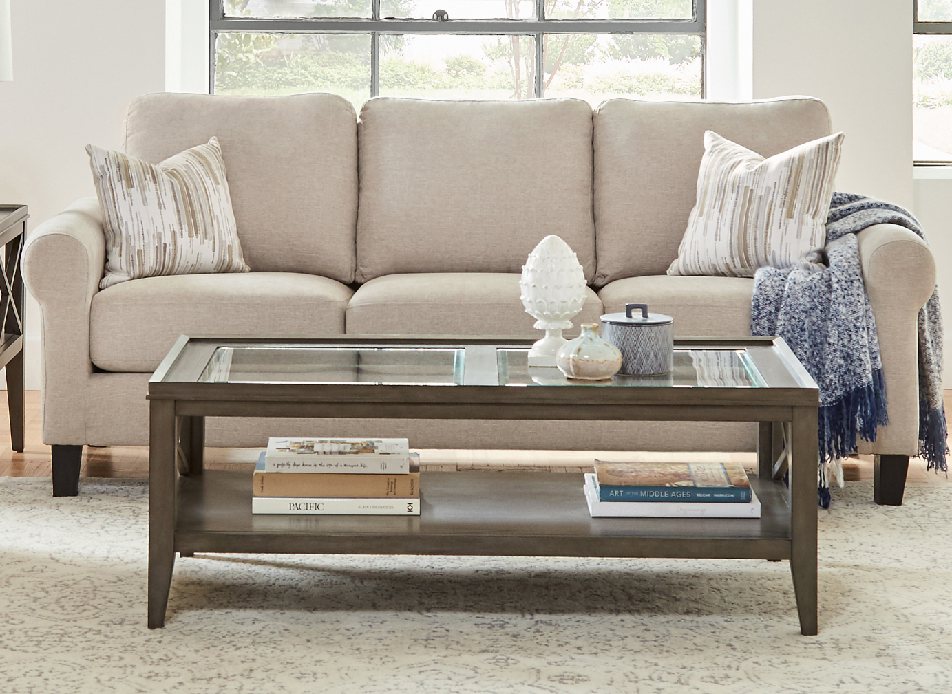 - Classic roll arm in a beautiful soft neutral palette of grey and beige
