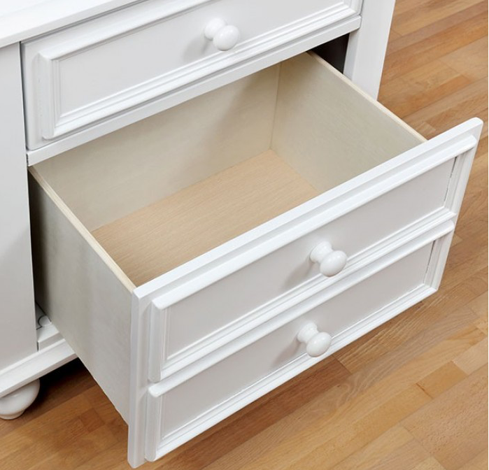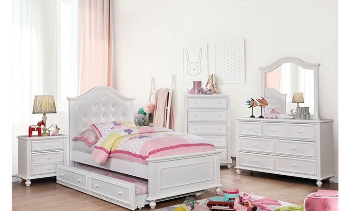 Fit for your little king or queen, this traditional style youth bed collection features intricate details and ample storage. The tufted leatherette headboard features a camelback design with moulded trim details to create a stylishly regal look that is sure to impress. With matching case goods that offer multiple roomy drawers and beautiful bun feet, there is no denying the practicality and beauty of this collection.