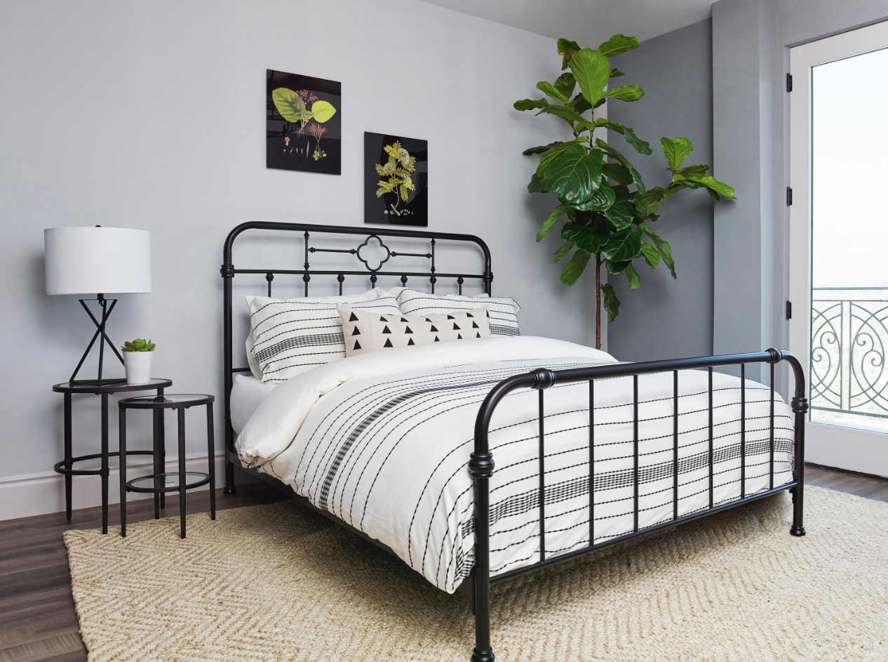 Beautify a bedroom with chic, French inspired style. This stunning, metal bed blends elegant curves and quatrefoil detailing for a rich, romantic look. The frame is finished in bold, matte black with a durable powder coating. Heavy gauge steel tube construction offers exceptional strength and stability. This beautiful, vintage style bed perfectly matches with your space.