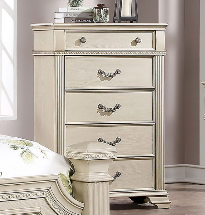 Pamphilos Traditional 5-Drawer Chest in Antique White
