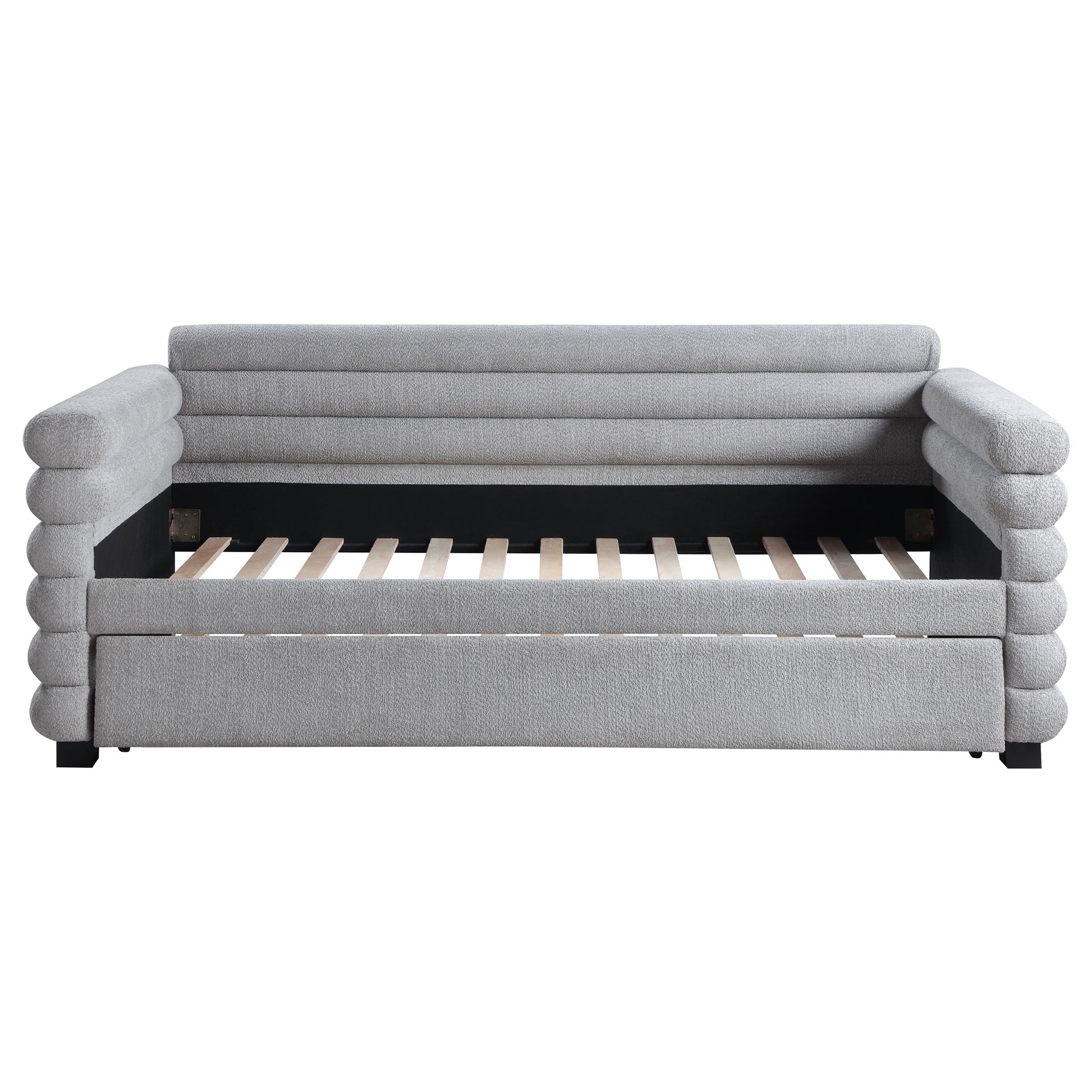 Patricia Boucle Upholstered Twin Day Bed with Trundle, Gray