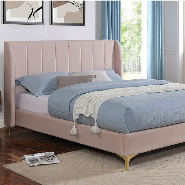 Pearl Contemporary Velvet Twin Wingback Bed - Light Pink
