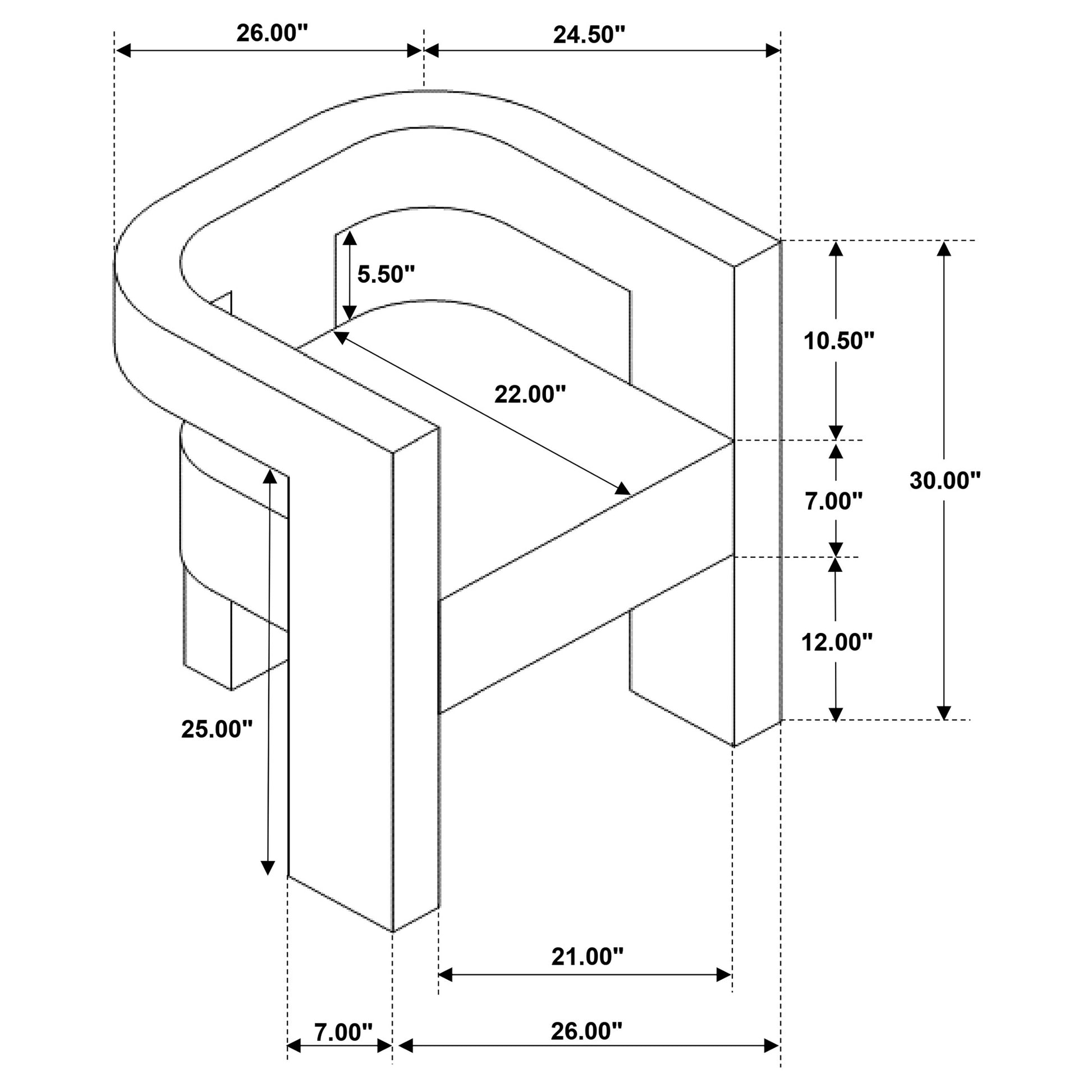 - Fully upholstered in bouclé fabric for a cohesive, luxurious look