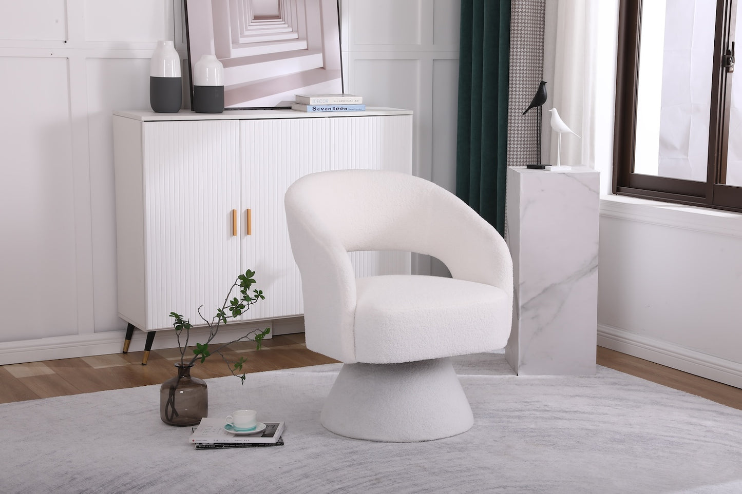 Pravin Modern White Boucle Swivel Chair