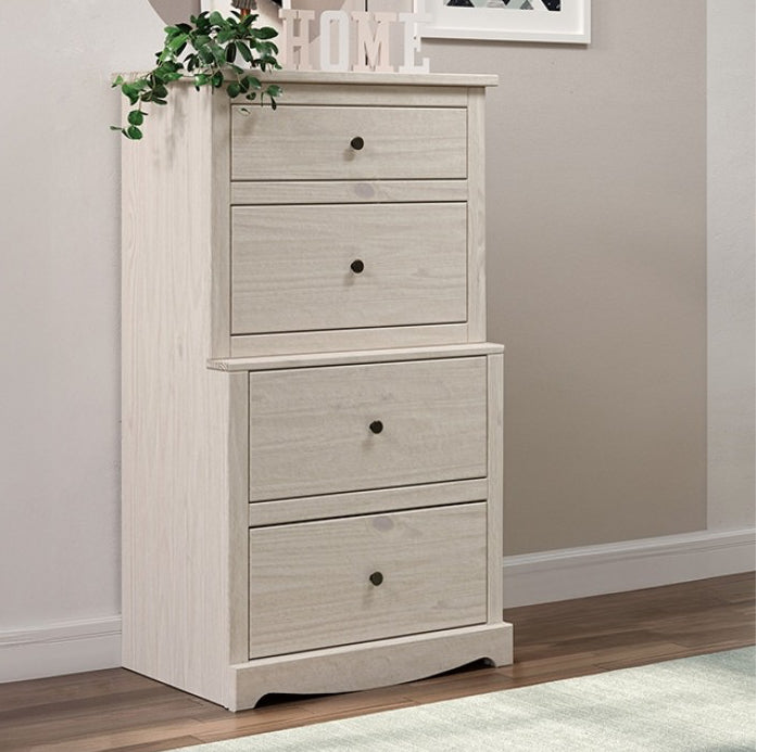 Update your youth bedroom with the premium Stavros Collection by Furniture of America. Crafted from solid Brazilian pinewood in a gorgeous White finish, this set is made in the USA. Available pieces include a nightstand, dresser, mirror, and chest, pairing perfectly with matching bunk beds or platform beds. Elevate your child's space with quality and style.