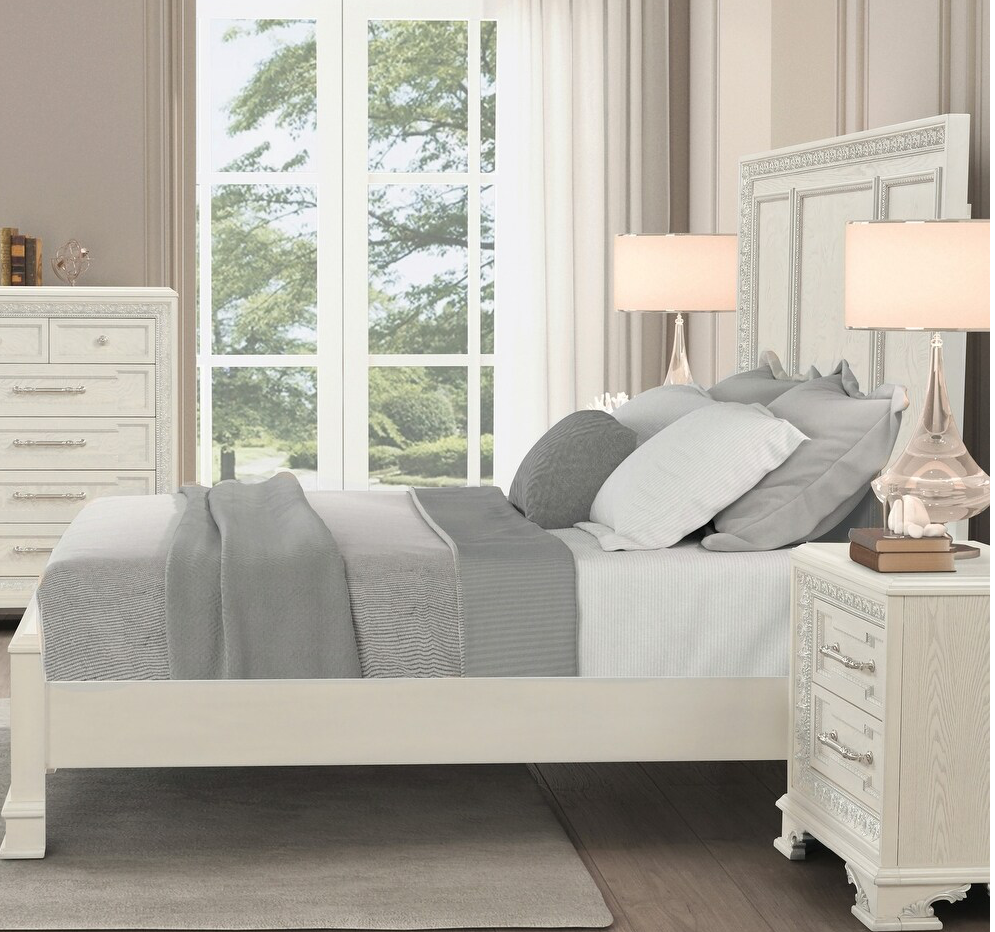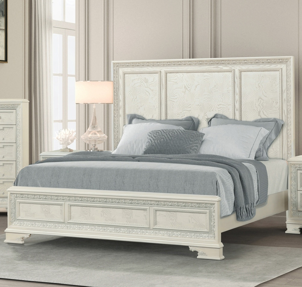 Stella Mia Traditional Queen Bed, Creamy White