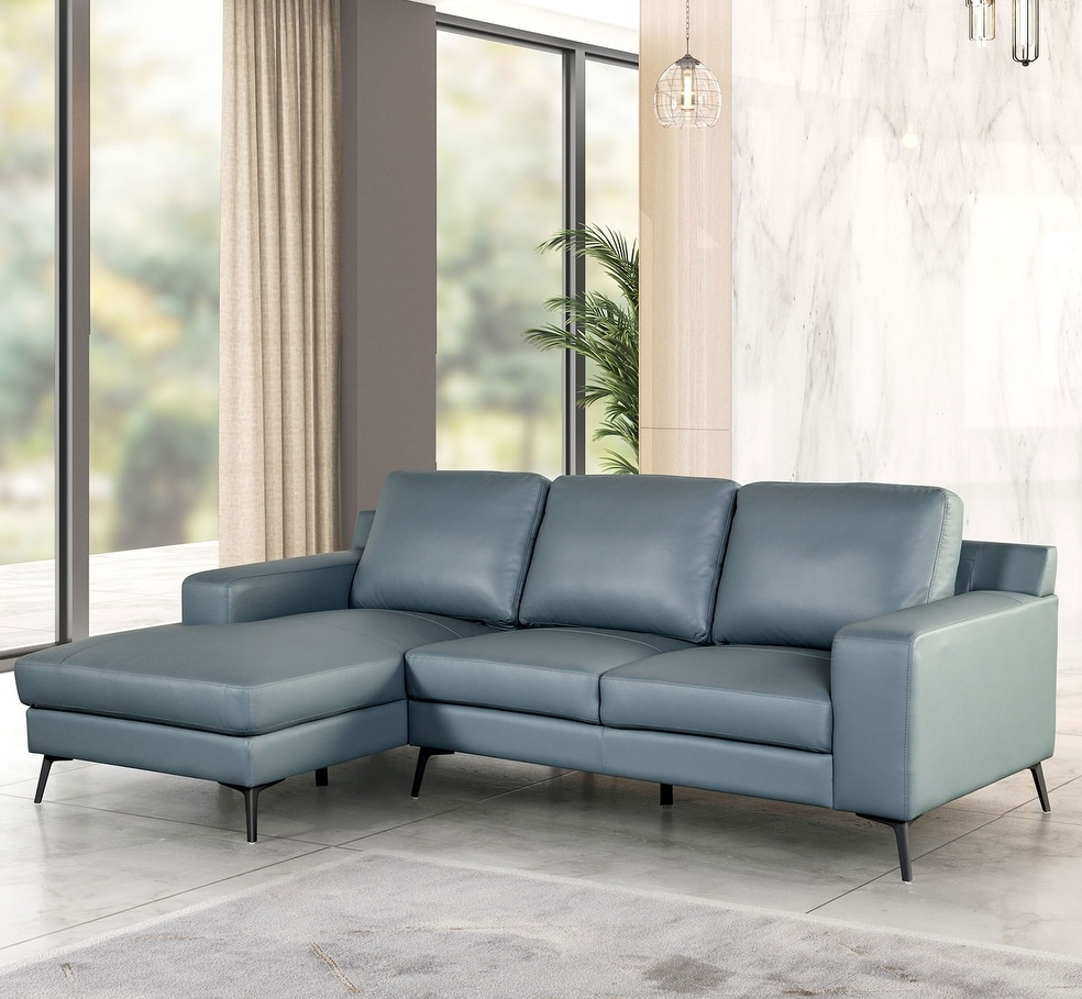 Stordal Contemporary Leather Sectional with Angled Legs - Blue