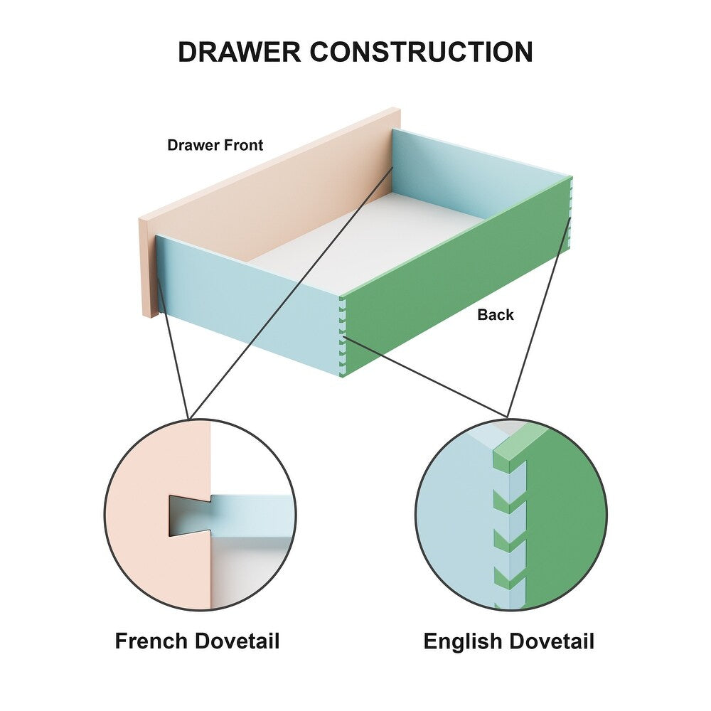 - ENGLISH DOVETAIL drawer corners offer premium construction