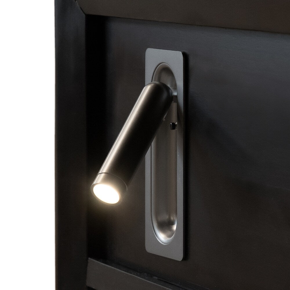 Maximize space without sacrificing style with this storage bed, ideal for bedrooms where organization is key. Featuring two footboard drawers with smooth ball-bearing glides, it offers discreet storage for bedding, seasonal clothing, or accessories. The soft cream upholstered headboard includes LED reading lights for added convenience. Finished in serene black with silver-capped legs, this bed merges mid-century modern elegance with practical functionality.