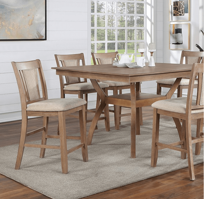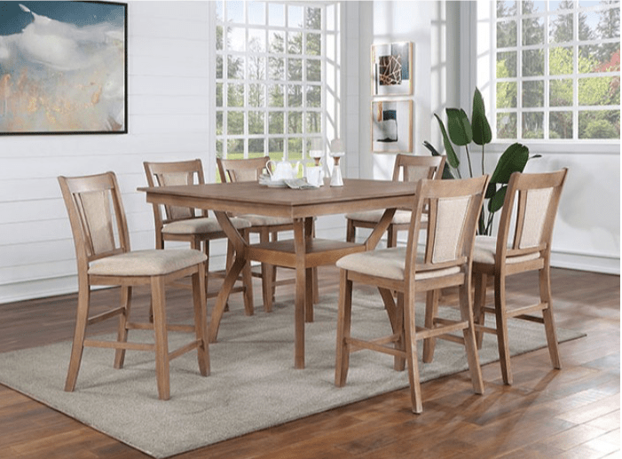 Upminster 7-Piece Natural Finish Counter Height Dining Set