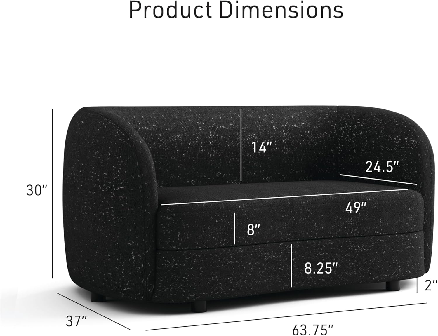 Striking, sculptural, and undeniably chic — this black bouclé living room collection is designed to impress. With a compact, fitted silhouette and a distinctive kidney-shaped single cushion, each piece features gracefully curved arms and a gently contoured backrest that create an elegant sense of movement. Barely-there wooden legs give the illusion of floating design, while the deep black hue adds modern sophistication and depth to any interior.