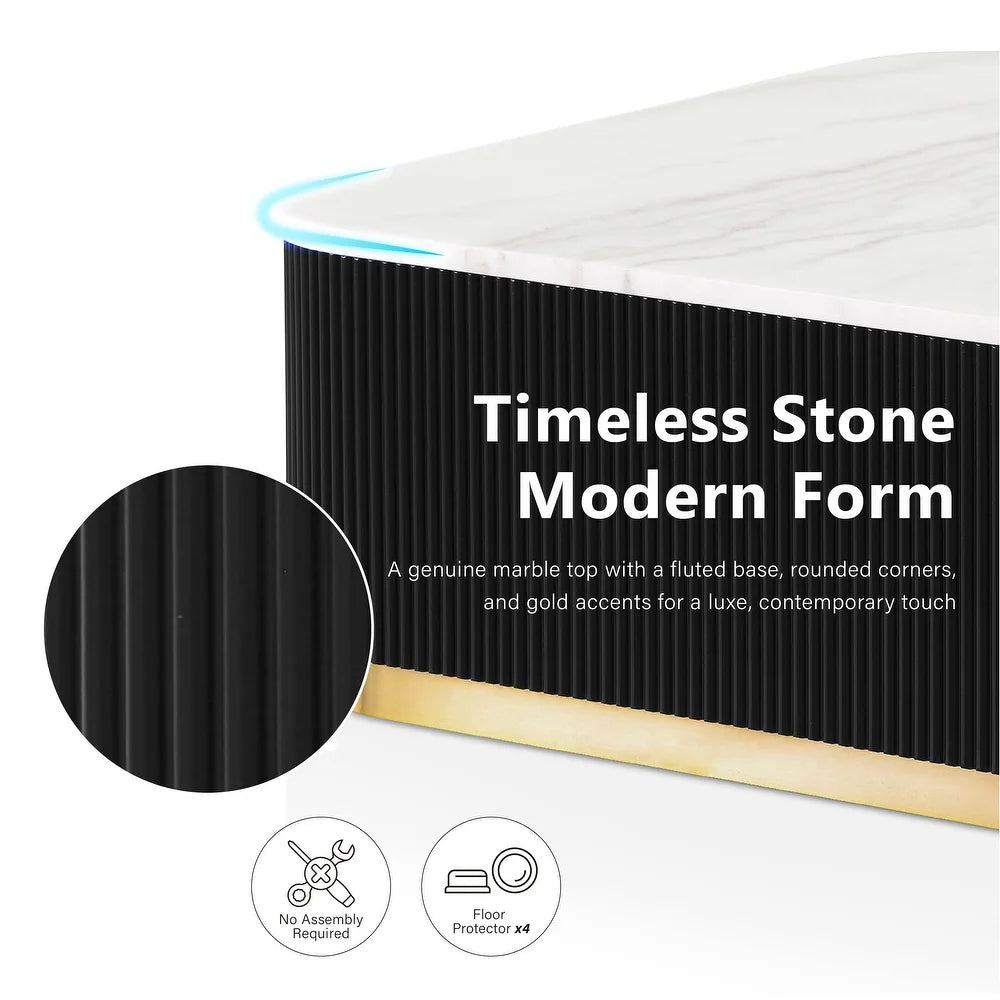 Infuse your living room with elegance and modern style with this striking round coffee table. A genuine white marble top serves as a luxurious focal point, set atop a fluted pedestal base that adds rich texture and architectural interest. A gold stainless steel accent at the base completes the look, making this table a sophisticated centerpiece for any contemporary setting.
