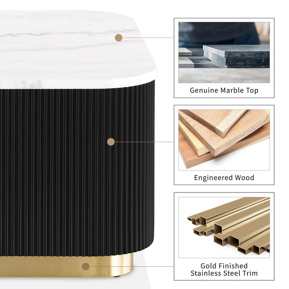 Virden Contemporary Genuine Marble Fluted Rectangular Coffee Table