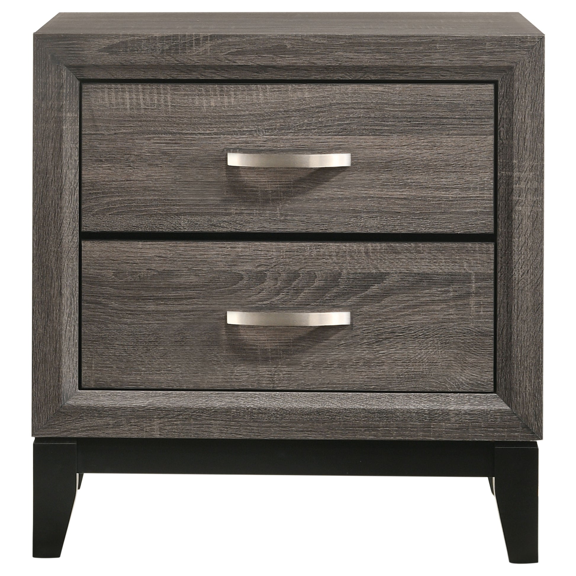 Blending mid-century modern influence with a contemporary edge, the Watson 2-Drawer Nightstand introduces bold color blocking and dimensional texture to your space. Finished in a stylish two-tone grey oak with black accents, this nightstand features sleek half-moon nickel drawer pulls and tapered black legs for a fresh, architectural touch. A subtle wood grain and engineered foil veneer elevate the look, while the dual drawers offer practical storage for bedtime essentials.